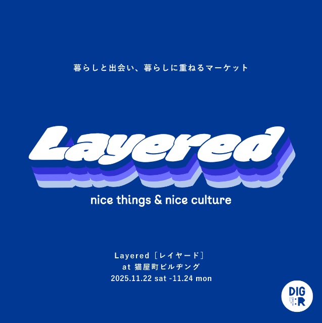 暮らしと出会い、暮らしに重ねるマーケット「Layered」。生活 - 衣・食・読・遊・浴・寝・住 - を豊かにするNICEなプロダクトとカルチャーが全国各地から広島・猫屋町ビルヂングに集結。毎日の暮らしを少しだけ変えてみたくなる、そんな出会いをお届けします。